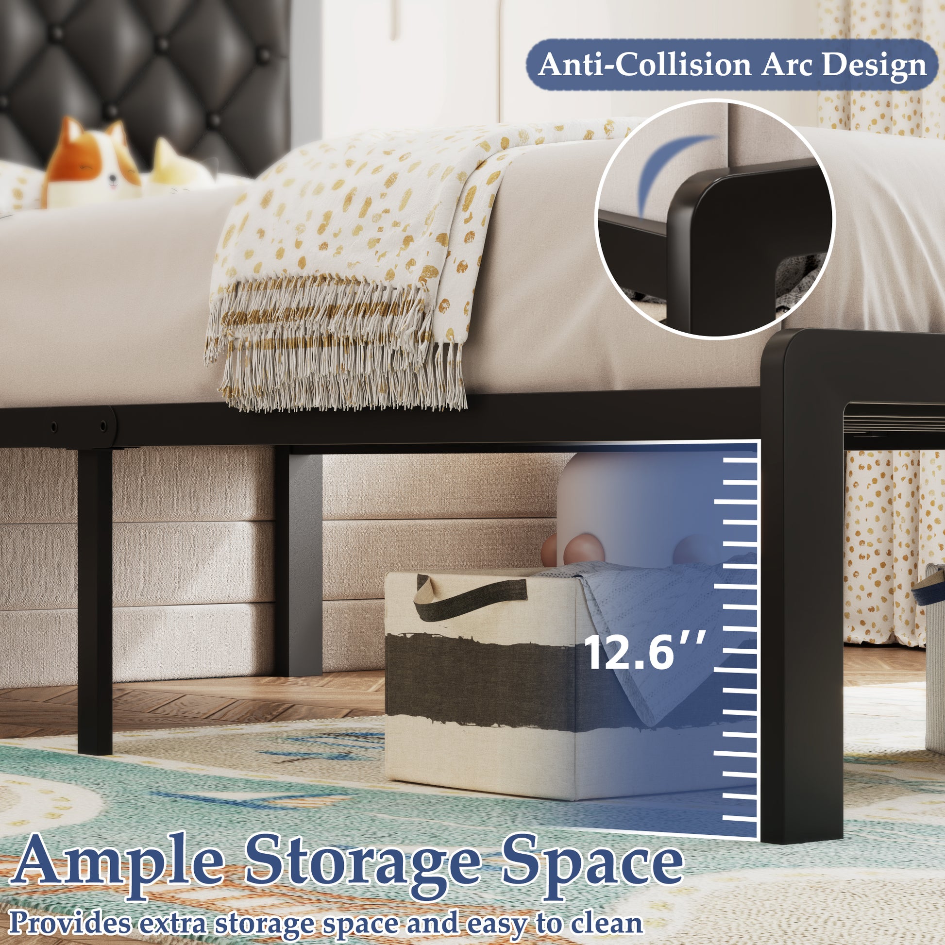Bed Frame with Headboard PU Leather Upholstered, All Metal Slats Support Platform, Twin, Black