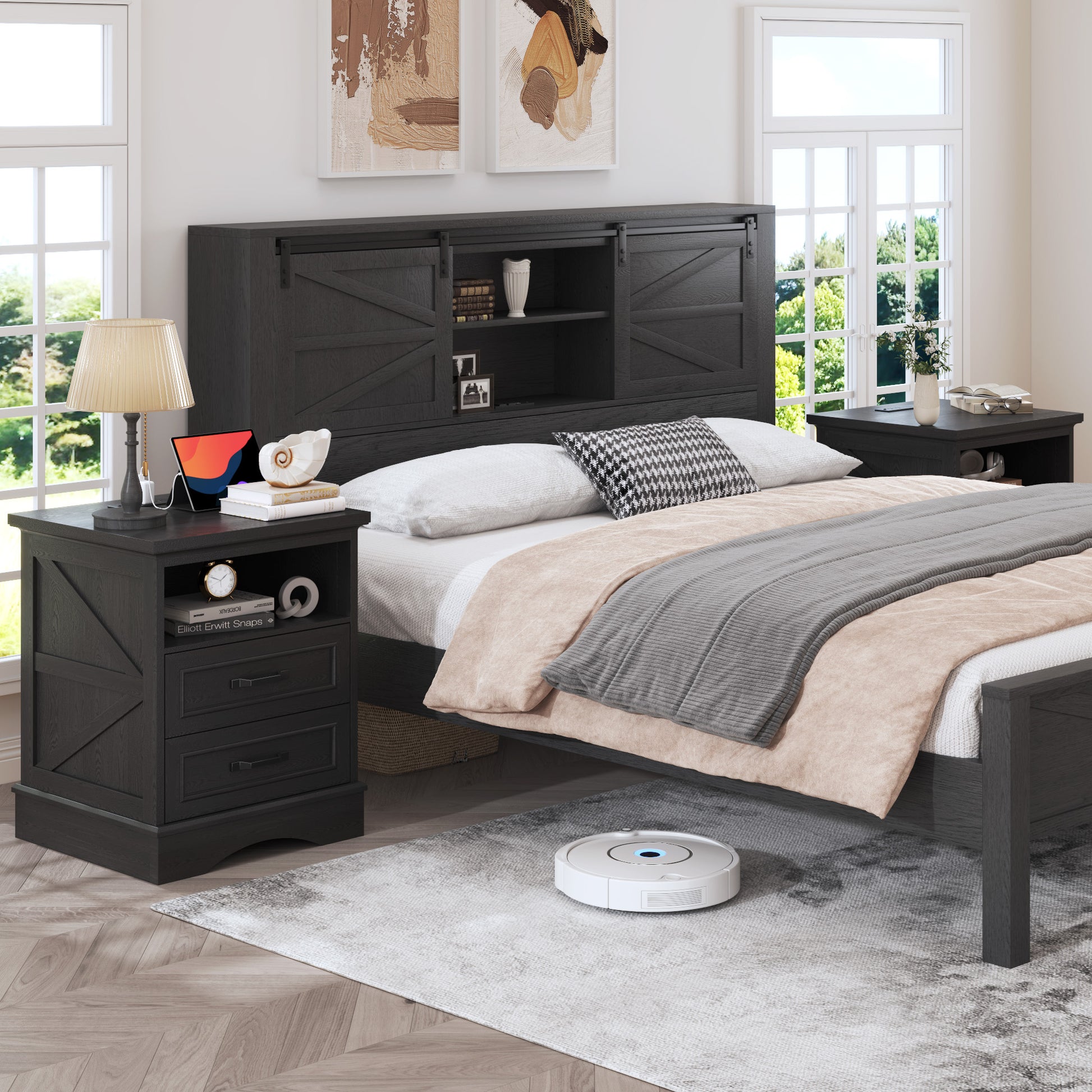 Built-in Charging Station: Our farmhouse nightstand set of 2 come with convenient charging station on top, 2 AC outlets, 1 USB ports and 1 Type-C, which can meet your charging needs for different electronic devices. 4.9 ft long power supply cord also provides convenience