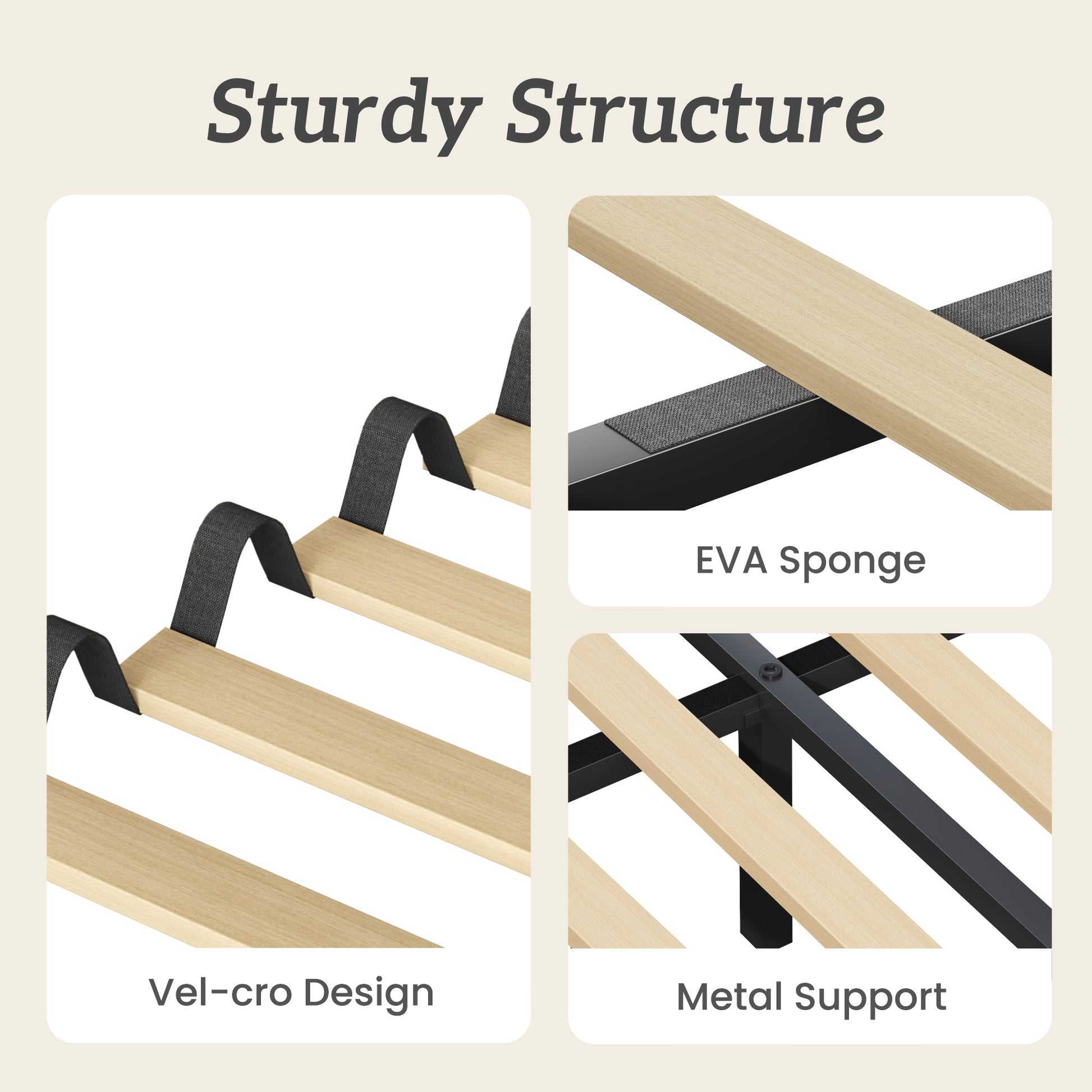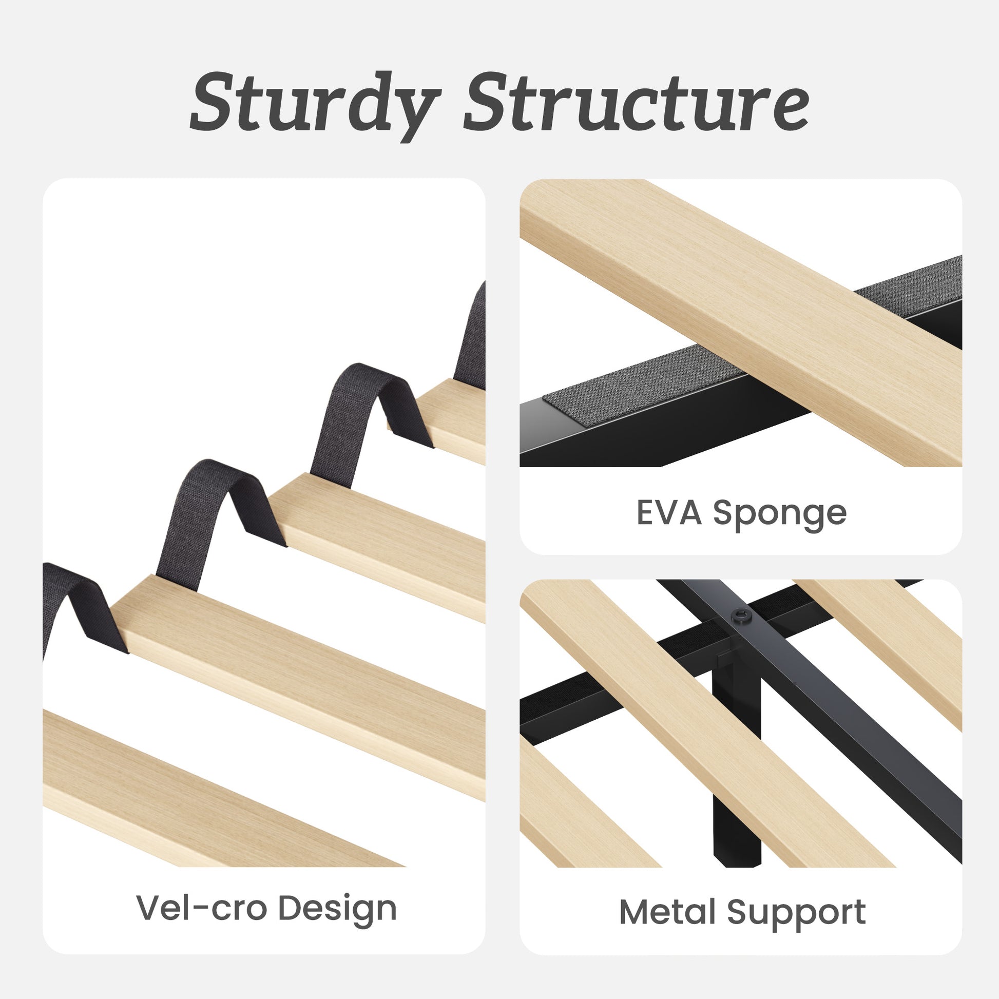 Tired of squeaky beds? This one’s built with a solid metal center bar and foam padding to keep things quiet. The strong wooden slats hold your mattress firmly, so you can skip buying a box spring. Just set it up, and you’re ready for a good night’s sleep—no noise, no extra cost