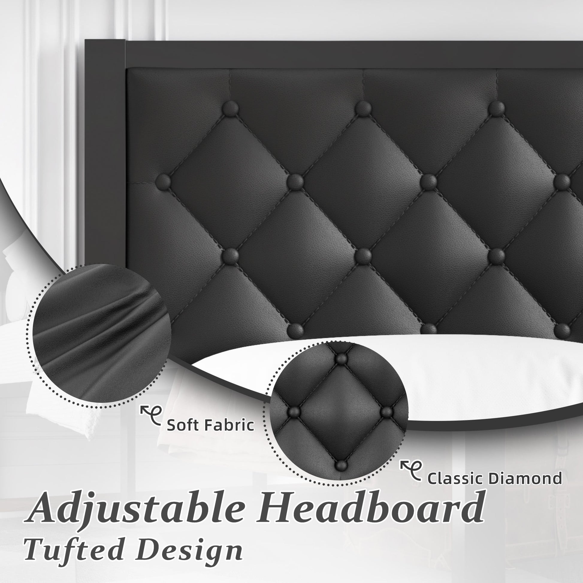 - Enjoy comfortable back support with the plush, memory foam-padded PU leather headboard.