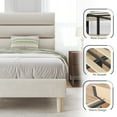 Fluest Twin Bed Frame with Velvet Upholstered Headboard, Metal Support, No Box Spring Needed, Noise Free, Easy Assembly, Beige